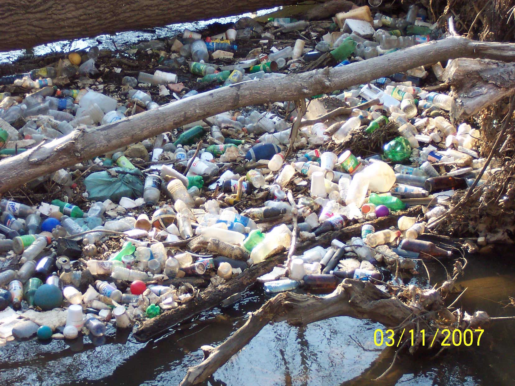 A bill (HB39) was introduced into the Maryland Legislature again this year that would require "bottle deposits, returns, and refunds on specified beverage containers". As usual, the beverage industry is opposed. Thomas S. Saquella, a lobbyist for the Maryland Retailers Association, referring to "the perceived litter problem in Maryland" proclaims that "container deposits are just another tax on consumers, and an additional burden to their busy lives". He and other opponents of the bill say curbside recycling programs are a better way to encourage recycling than bottle deposits. In his opinion "Something that’s working very well, why would you want to disturb it?” As an example of how well the curbside recycling program is working in Montgomery County, I submit the photo below, taken today from a foot bridge over Rock Creek where I frequently walk.