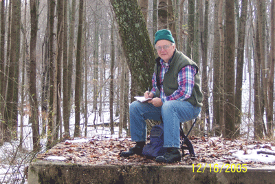 The author, taking notes on the sewer bunker. Note: An abridged version of the above essay was published in the Feb/March 2006 issue of the Audubon Naturalist News. Below you will find periodic updates that will continue until either the project or the author dies. A booklet hard copy is available at lulu.com March 13 - Glenda and I visit Mill Creek hoping to hear the wood frogs. The vernal pool is low but we see some frogs, maybe a dozen. They are silent as we approach. There are some egg masses already present and one dead frog floating upside down in the pool. We sit down by the labyrinth and eat our picnic lunch. Eventually we hear some quacking but not very robust. We move closer to the pool and wait quietly for about 20 minutes but the frogs never resume croaking. They seem to sense our presence in spite of our stillness. It is very warm, 81F. The following day I send a copy of the Jan/Feb issue of Audubon Naturalist News, containing this essay, to all members of the County Council as well as the state and federal representatives of my district. Later in March the results of a Mason-Dixon poll indicate that 60% of Montgomery County democratic voters believe that transit and other traffic improvements should take precedent over the ICC. The poll was conducted in such a way as to reveal that the more people learn about the facts of the ICC, the more likely they are to oppose it. June 10 - Glenda and I, along with about thirty others, attend a hike through the Paint Branch watershed led by Greg Smith, a tireless local activist. He convinces us that the ICC is not a done deal in spite of the "final federal approval" announced earlier this month. He tells us that legal action is in the works and encourages us to stay with the program. Our inclination to do so is reinvigorated by spending time in this most pristine of the watersheds that would be devastated by the highway. The Feds approved the project a few weeks ago in spite of numerous flaws in the DEIS. Governor Ehrlich scheduled a press conference for June 8 and then suddenly moved it ahead to May 30, confounding plans by opponents to organize a protest rally and making it impossible for Doug Duncan to share in the glory. It is hoped that the courts may delay the project long enough to allow for some turnover in the November elections. Duncan's campaign against Martin O'Malley (popular Mayor of Baltimore) in the Democratic primary is faltering. Although O'Malley has also signalled his support for the ICC (to a Chamber of Commerce group), he is not as deeply entrenched as Duncan on this issue. There are also at least two candidates running for county council who are opposed to the ICC: Marc Elrich and Duchy Trachtenberg. The cost of petroleum continues to climb with gasoline now at over $3 per gallon. A recent poll suggests that the more people learn about the huge costs, extensive adverse effects and marginal benefits of the ICC, the more they tend to favor alternatives. September 17 - I love walking in the forest after a good rain. Everything is fresh, the ground damp, footsteps go unheard. I'm perched on the sewer bunker. Chickadees and nuthatches are chatting, jays calling, dogs barking in the distance. The stilt grass has almost covered the trail - not much traffic through here lately. Tom's trickle is trickling. It's peaceful here, as usual, a pleasant place to sit and think, and there is a lot of good news to think about. The Democratic primary was a huge success in spite of a spate of dishonest publicity by the End Gridlockers. Ike Legget, on a campaign of slowing growth, trounced pro-growth Steve Silverman. Dutchy and Marc made it into the top four. Valerie Ervin, also opposed to the ICC, won handily in district 5. There being no significant Republican opposition, we now have the prospect of an executive who was accused by his opponents as being equivocal on the ICC and a county council whose majority is on record as being opposed. In a further development, Doug Duncan pulled out of the governor's race on June 23rd for health reasons - he is suffering from depression. Thus, Martin O'Malley, whose support for the ICC has been much less zealous than Duncan's, will run against Ehrlich in November. To my right, another oak tree is down, uprooted by wind and rain. It was a large one that took several neighbors along for the ride. Huge clusters of brown leaves droop from its branches which block the trail. There is not yet a new path around it. As I said, not much traffic through here. A healthy multiflora rose with six foot branches grows in the soil that has accumulated on top of the bunker. The soil is an inch thick in places, even thicker at the base of the rose bush. I scrape the bush loose from the surface with my boot, push it over the edge of the bunker. I'm amazed at the richness of the soil. Carbonaceous. Cellulosic. Organic leaf litter, bird droppings, worm excrement.. The multiflora rose, if unchecked, will take over this woods, render all trails impassable, convert this place into a jungle. A pileated woodpecker has entered the scene. I hear its loud call once in a while but haven't seen it yet; haven't really tried to locate the bird. It will appear soon enough, or maybe not. It doesn't matter. We can appreciate eachother without eye contact. Early November - Martin O'Malley defeatsRobert Ehrlich for governor of Maryland. Shortly thereafter, Environmental Defense and the Maryland chapter of the Sierra Club filed notice that they intend to jointly sue to stop the ICC, arguing that it would violate the federal Clean Air Act. The Audubon Naturalist Society announced its intention to file a separate suit, contending that the Ehrlich administration violated NEPA by failing to adquately consider alternatives that are less damaging to the environment. Maryland Transportation Secretary Flanigan said he was neither surprised nor worried. 2007 - On January 25 I attend a Transportation Forum at the county office building. The c
